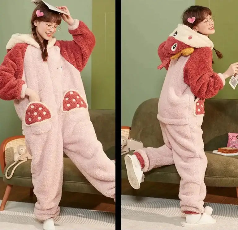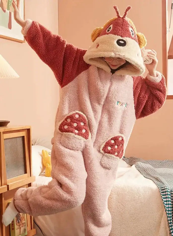 Kigurumi, meaning 'costumed character' in Japanese, captures the playful spirit of Japanese culture. This Mushroom Ant Kigurumi Onesie combines the charm of a mushroom with the quirky personality of an ant. Itās perfect for lounging, cosplay, or even as pajamas, adding a touch of fun to your wardrobe.