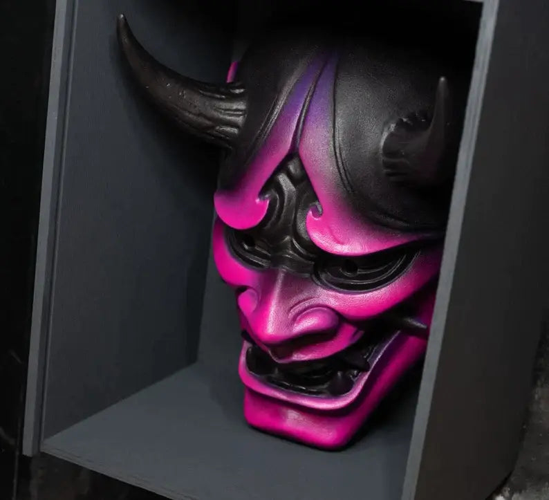 The Hannya mask is a potent symbol in Japanese Noh theater, signifying a woman transformed into a demon by jealousy and rage. This mask not only represents complex emotions but also serves as a protective talisman against evil spirits, making it a fascinating addition to your decor.