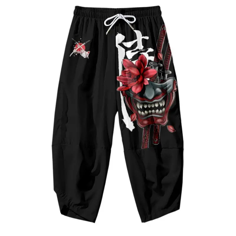 The Oni Katana Harem Pants reflect the rich tapestry of Japanese culture, merging mythical Oni symbols and the samurai spirit. These unique designs not only offer a striking visual appeal but also celebrate Japan's storied past, making them a perfect choice for fashion enthusiasts.