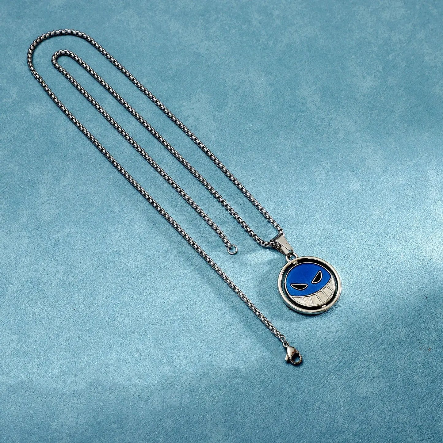 The Portgas D. Ace Rotating Necklace is inspired by the beloved anime series One Piece. It features Ace's distinctive smiley face emblem, symbolizing loyalty and adventure. This necklace not only showcases your love for the series but also connects you with a vibrant community of fans who appreciate Ace's fearless spirit.