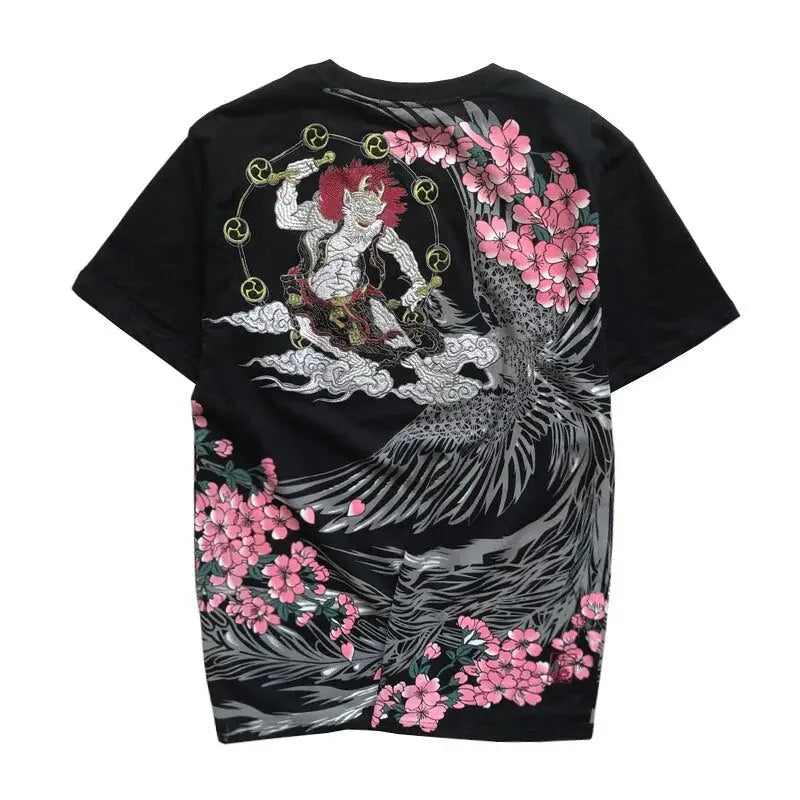 The Raijin Storm God Embroidery T-Shirt is more than just a clothing item; it's a cultural expression. Inspired by Raijin, the Japanese god of thunder, this design symbolizes power and creativity, making it a unique addition to any wardrobe. The intricate embroidery reflects traditional Japanese craftsmanship.