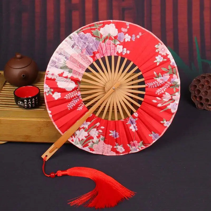 This hand fan features a beautiful red floral design crafted from high-quality silk and bamboo. Lightweight and easy to carry, it measures perfectly for both display and practical use. Experience the blend of artistry and functionality—order now to enhance your collection!