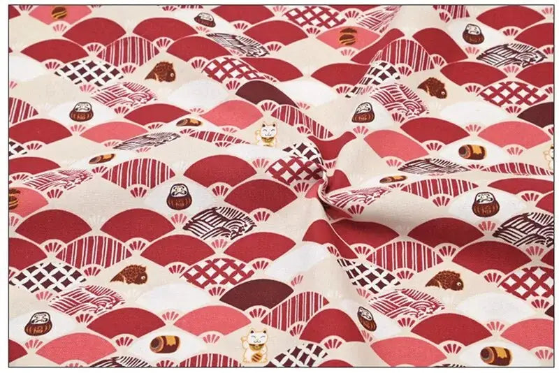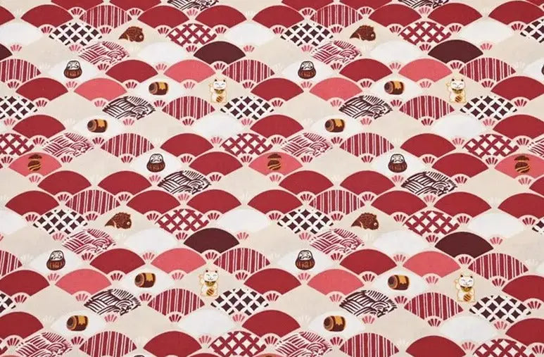 Furoshiki, traditional Japanese wrapping cloths, represent a sustainable practice rooted in cultural heritage. This cloth, adorned with lucky cats and daruma dolls, not only serves practical purposes but also embodies values of good fortune and perseverance, making it a beautiful addition to any home.