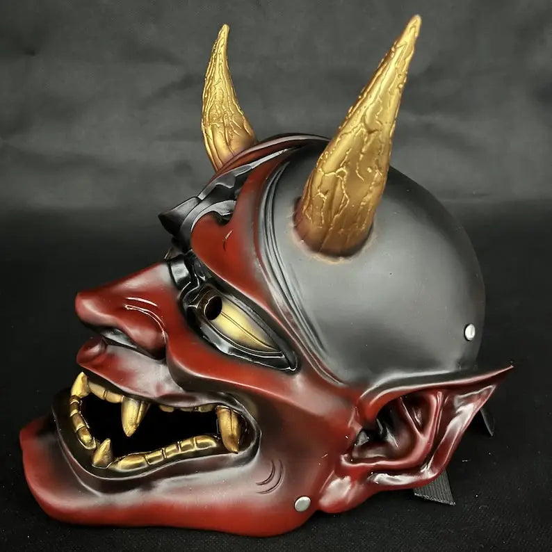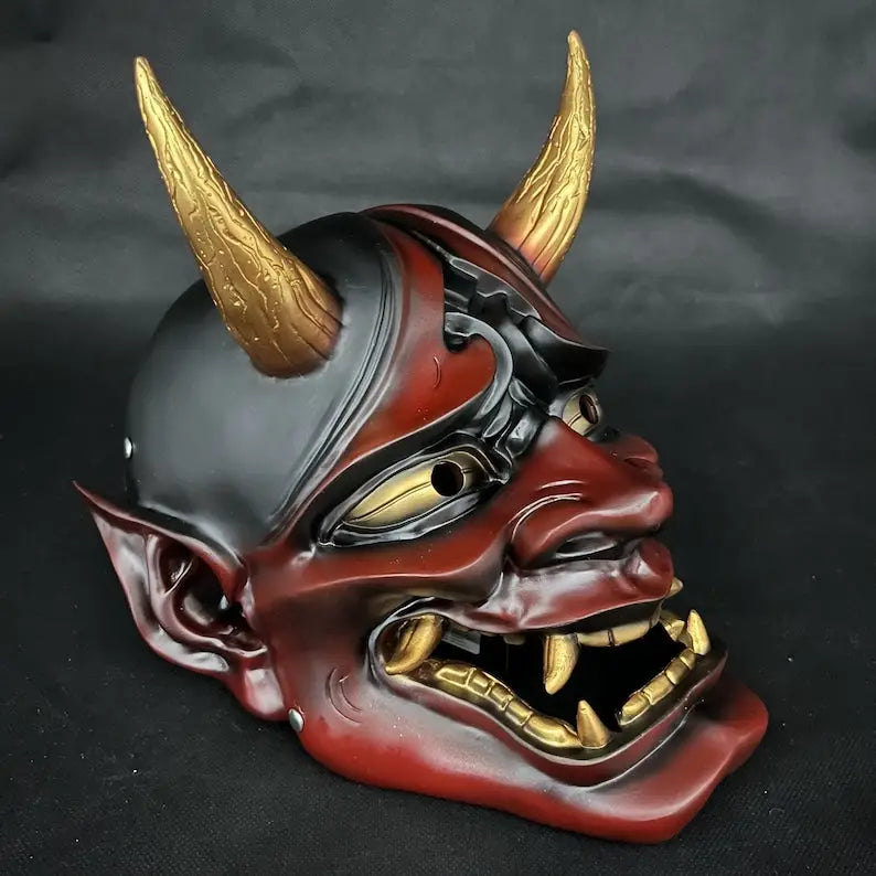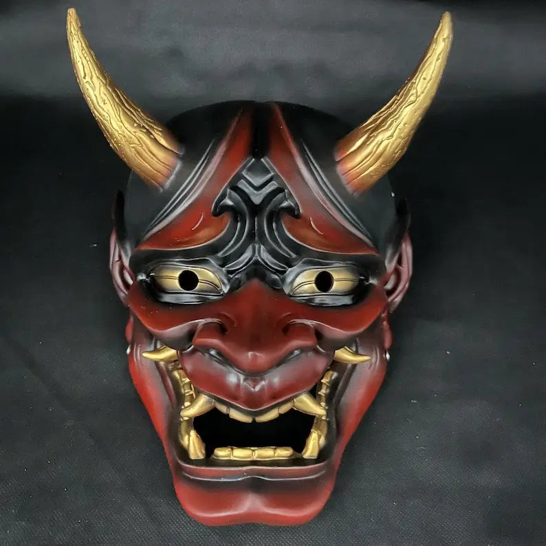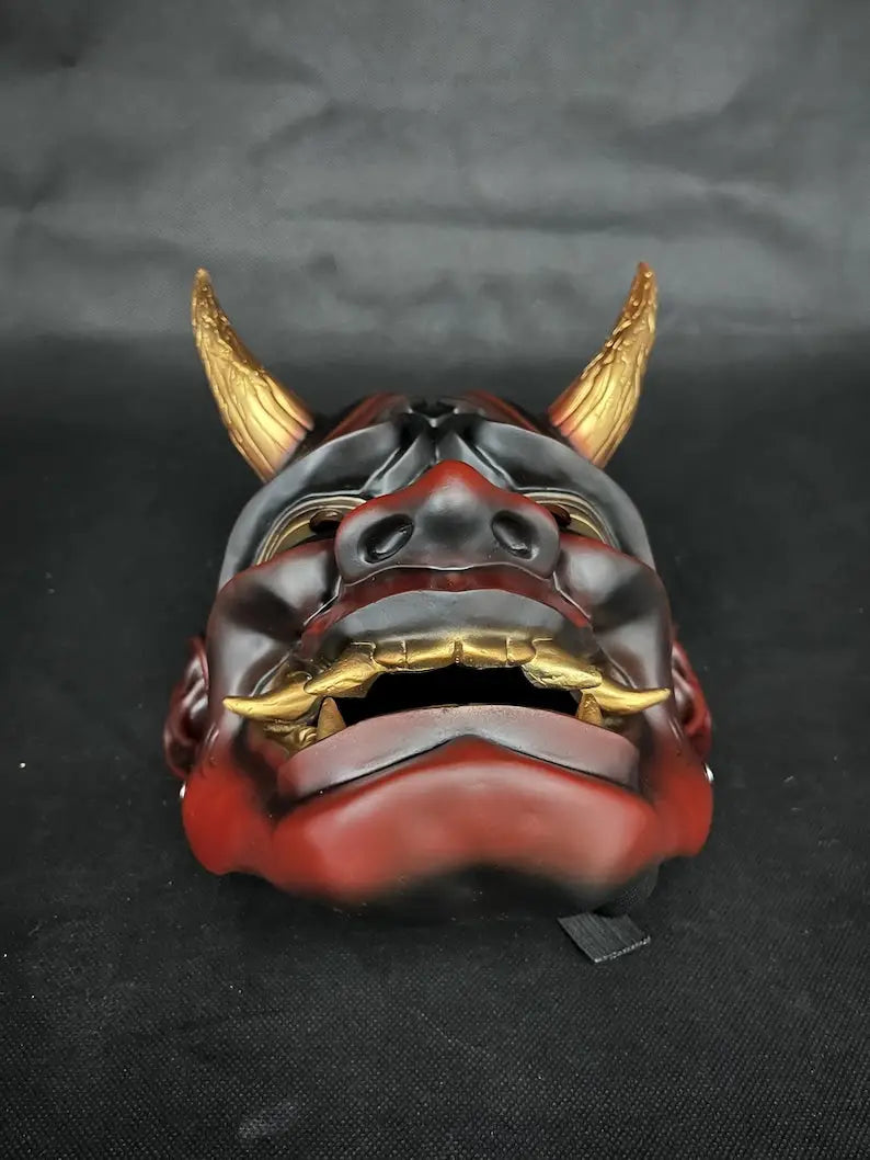 Crafted from sturdy PLA resin, this red Hannya demon mask features intricate details, including golden horns and fierce expression. With a comfortable cotton elastic band, it’s easy to wear for long periods. Add this unique piece to your collection and celebrate Japanese tradition!