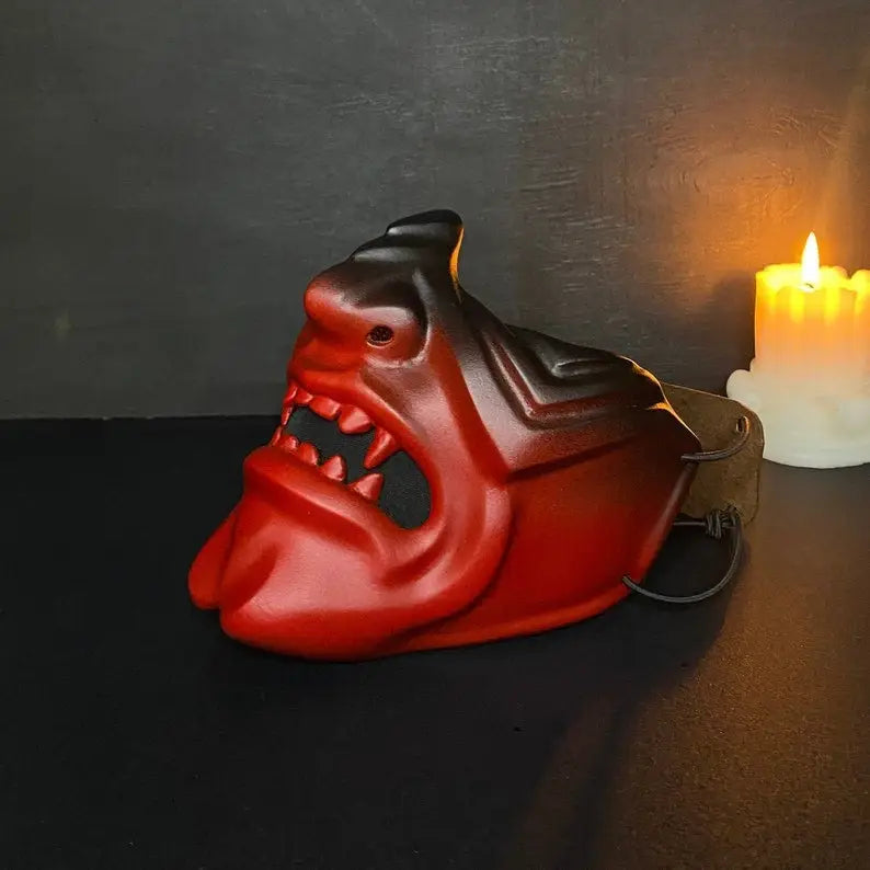 This Red Oni Samurai Menpo Mask is crafted from durable PUR resin and features a genuine leather strap for a secure fit. Its eye-catching design is perfect for cosplay or as a stunning wall display. Donāt miss the chance to own this unique piece of Japanese culture!
