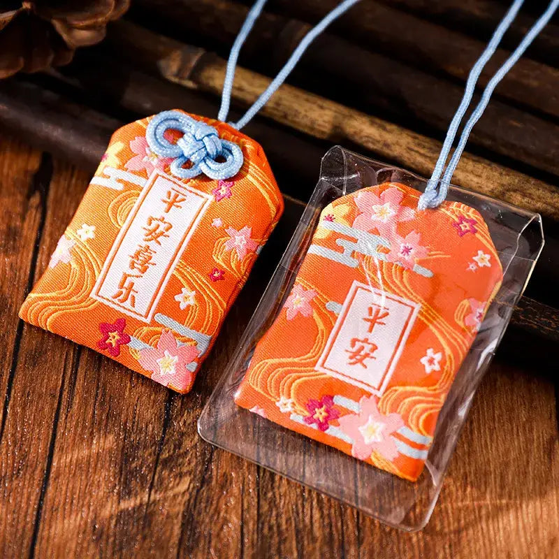 Measuring 6x4 cm, this omamori is crafted from soft cotton, ensuring durability and ease of use. Its vibrant orange fabric features intricate floral patterns, enhancing its visual appeal. Perfect for carrying in a bag or pocket, this amulet not only offers spiritual protection but also serves as a beautiful accessory. Order now to add this piece of Japanese tradition to your life.