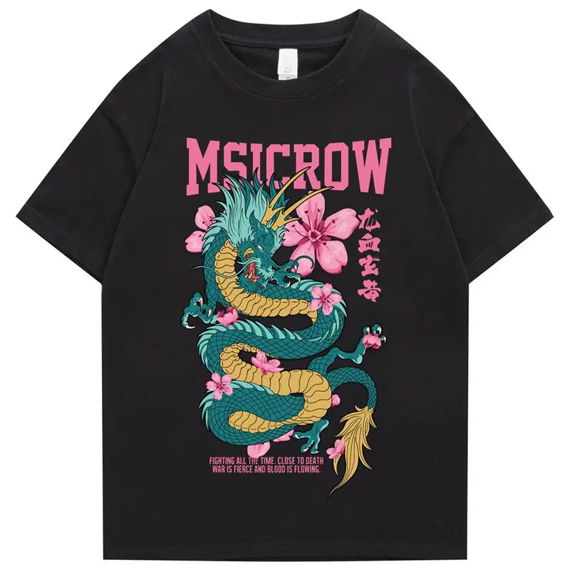 In Japanese culture, dragons symbolize strength and wisdom, while sakura, or cherry blossoms, represent the fleeting beauty of life. This t-shirt artfully combines these elements, enriched by authentic kanji, making it a unique expression of cultural appreciation and personal style.