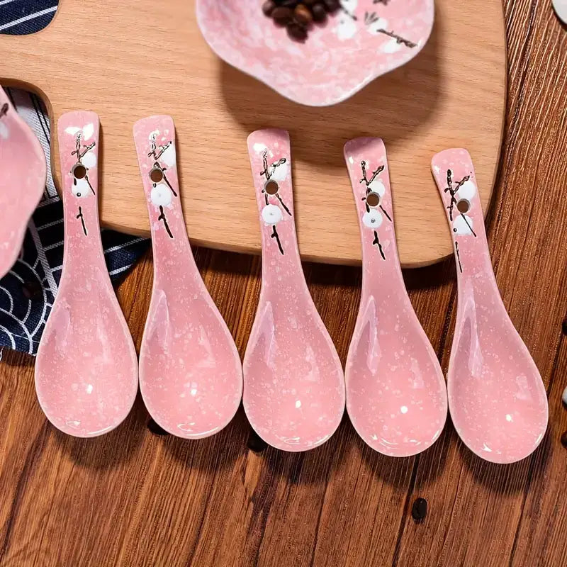 Elegant Sakura Pink Ramen Spoon Set
