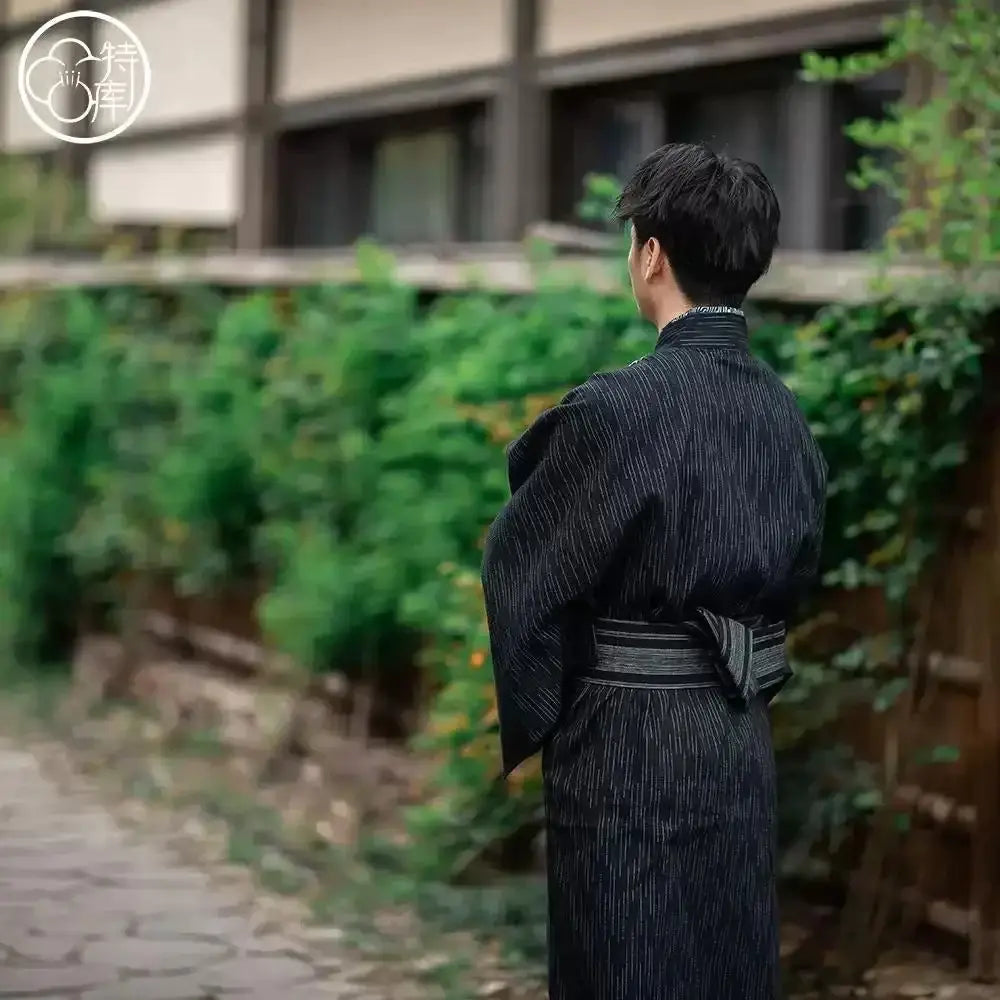 This Sakura River Black Men Kimono features a beautiful cherry blossom pattern on a sleek black background, crafted from soft cotton for comfort. Available in M and L sizes, it includes an adjustable Obi belt for a secure fit. Embrace this piece of heritage today!