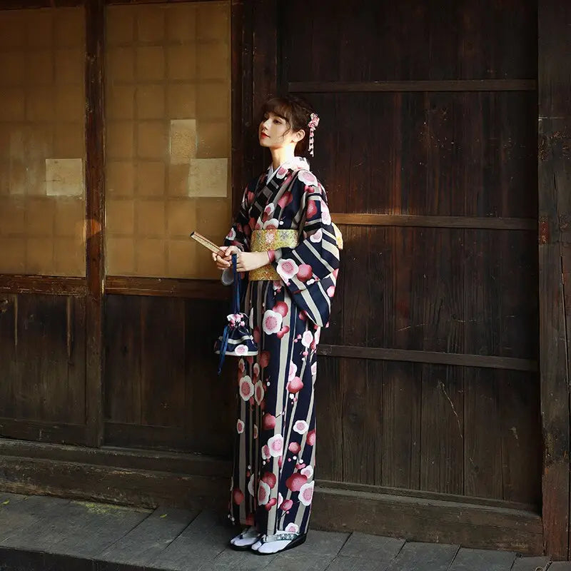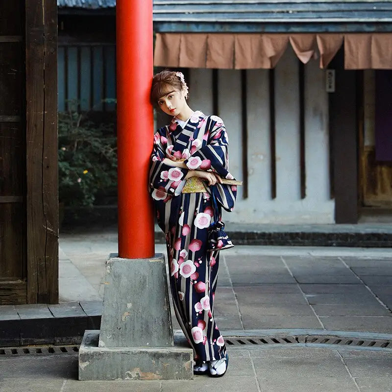 The Sakura Striped Women's Kimono reflects Japan's rich culture. Kimonos have been worn for centuries, symbolizing elegance and grace. The cherry blossom, or sakura, is cherished for its beauty and fleeting nature, making this kimono a celebration of life and tradition.