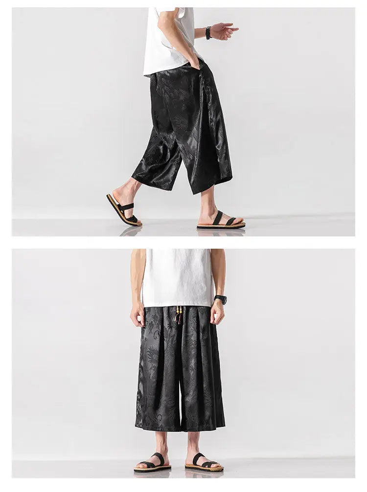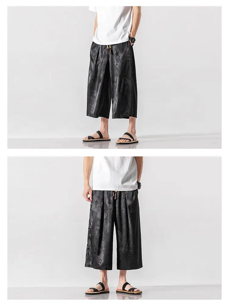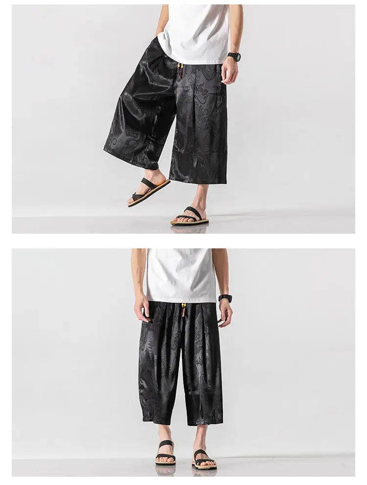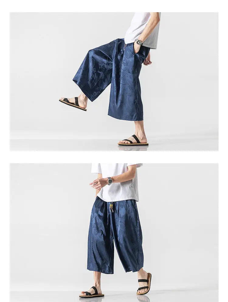 The Silk Dragon Pattern Wide Pants are inspired by traditional Japanese motifs. The dragon symbolizes strength and good fortune in Japanese culture, making these pants a stylish yet meaningful addition to your wardrobe. Their unique design reflects a blend of both heritage and contemporary fashion.