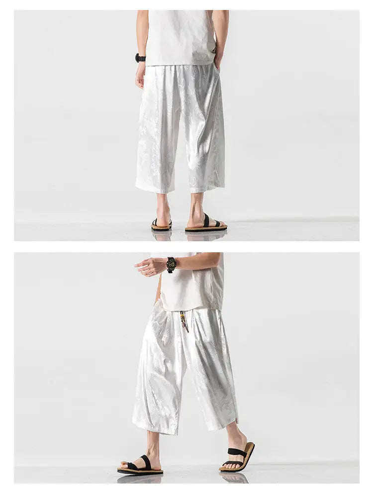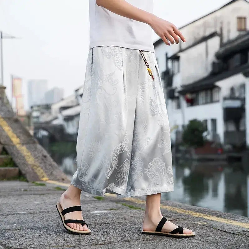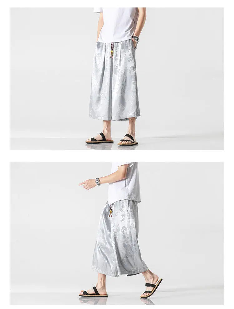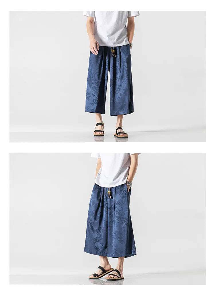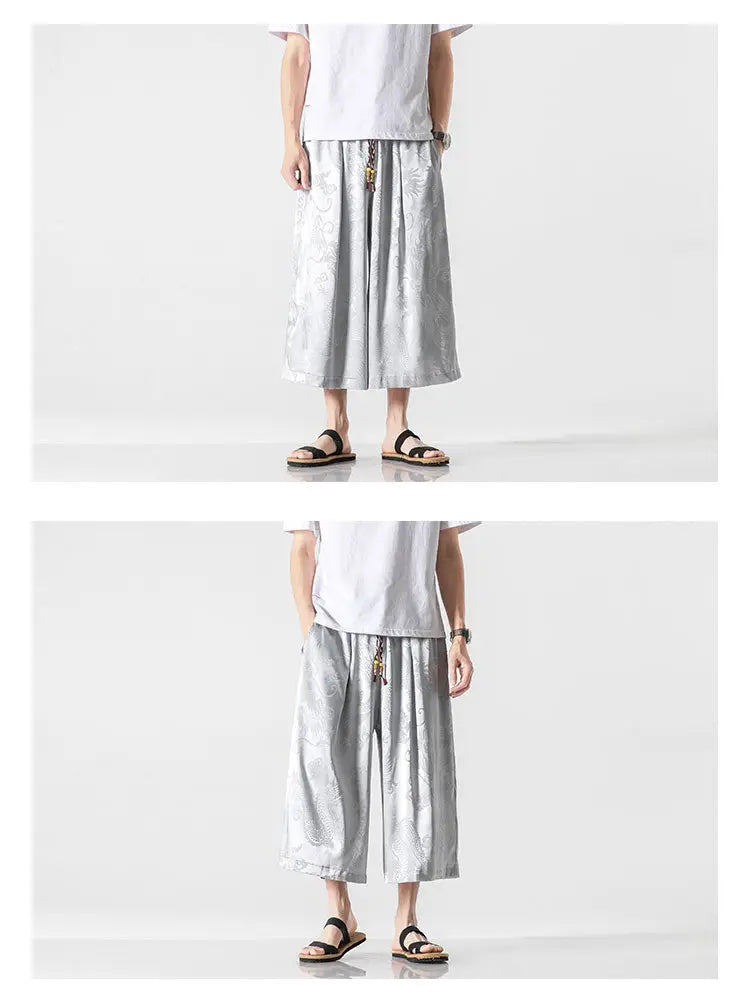 The Silk Dragon Pattern Wide Pants are inspired by traditional Japanese motifs. The dragon symbolizes strength and good fortune in Japanese culture, making these pants a stylish yet meaningful addition to your wardrobe. Their unique design reflects a blend of both heritage and contemporary fashion.