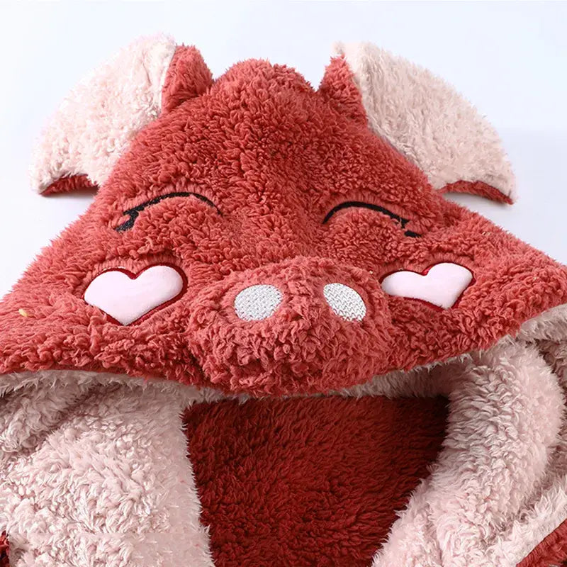 Made from a plush cotton and polyester blend, this onesie offers warmth and flexibility. It features a cute piggy design with cheerful ears and a friendly face. Available in sizes S to XL, it's easy to wear and perfect for lounging. Grab yours today!