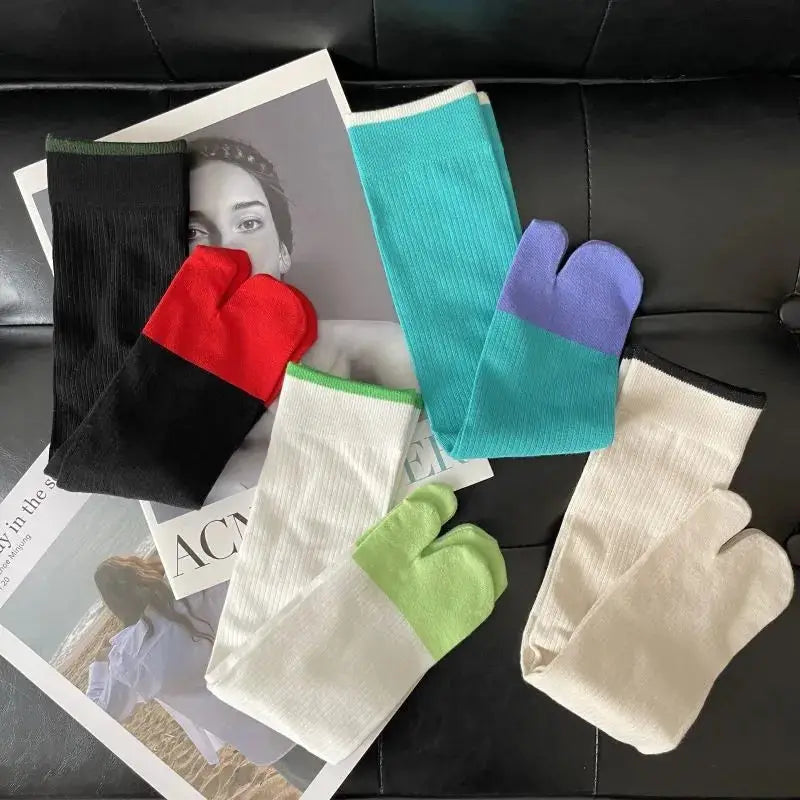 These Tabi socks are inspired by a long-standing Japanese tradition. The split-toe design allows for ease of movement and is often associated with wearing traditional sandals. Today, they blend seamlessly into modern fashion, making them a unique addition to any wardrobe.
