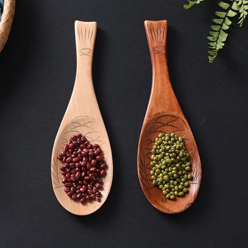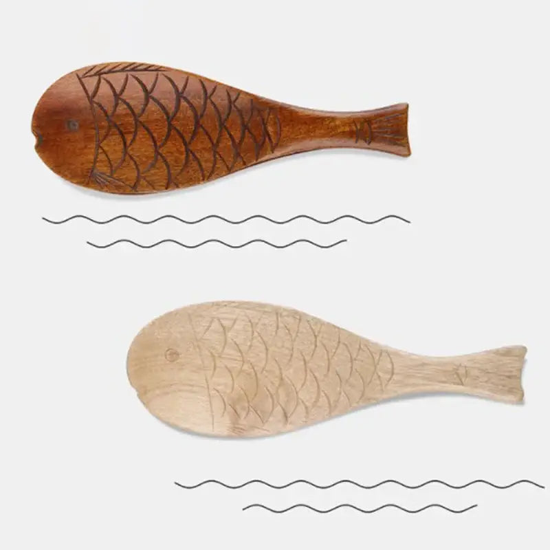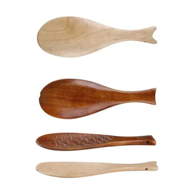 Elegant Wooden Fish Rice Spoon Set