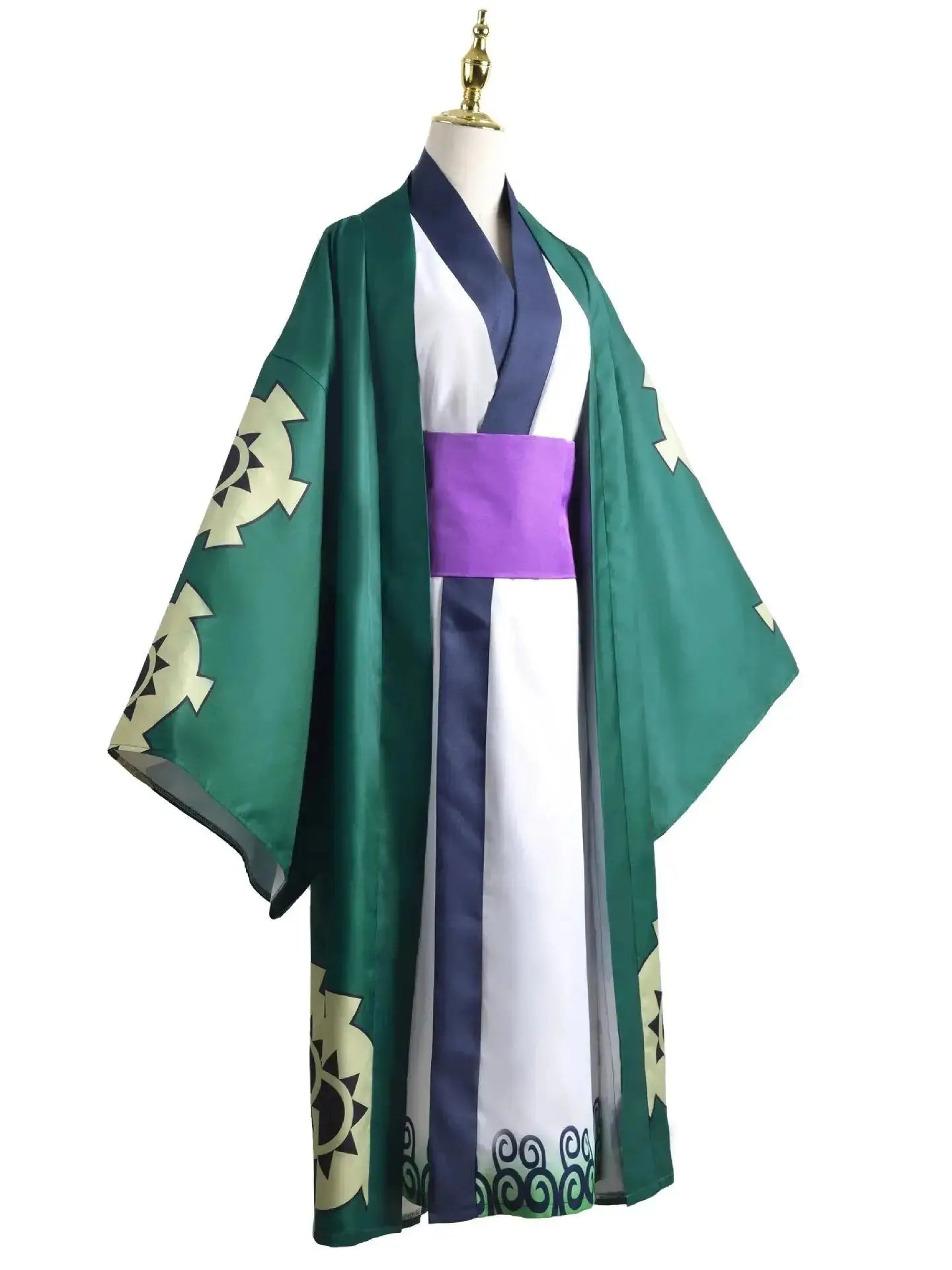 This Zoro Wano Outfit Cosplay features a stunning design that captures the essence of the character. Made from high-quality materials, it ensures durability and comfort, perfect for long events or photoshoots. The outfit includes a vibrant green robe accented with a striking purple sash and detailed motifs that reflect Zoro's iconic style. Available in various sizes (S, M, L, XL, XXL), it caters to different body types, making it easy for everyone to join in on the fun. Ready to transform into Zoro? Grab yours today and make a memorable impression at your next cosplay event! 🌟
